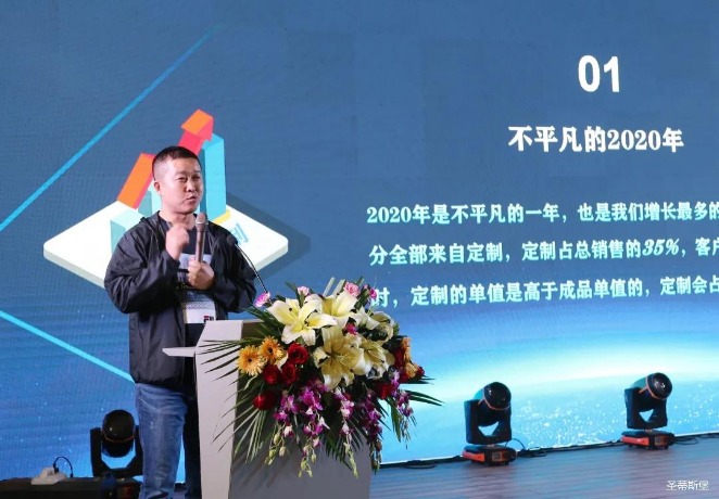 华灯璀璨的开场仪式,点燃了现场如火如荼的气氛。星空电竞集团营销总经理陈玉伟先生对晚会进行了主题发言,他对2020年的营销工作进行了总结,并着重从营销工作部署、重点项目开展、产品整合、拎包帮扶、渠道运营和移动+定制整装优势等方面对2021年的营销工作做了全面的统筹规划。同时,他还讲解了“美国梦凯莎床垫”新品的产品工艺、市场优势、产品定位,使经销商对我们的新产品拥有更深入的认识和了解。