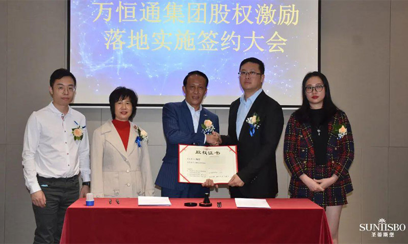 星空电竞集团执行董事及法人代表王浩基先生正式为第一期六位虚拟受限股股东授予荣誉证书并签订股权分配协议。